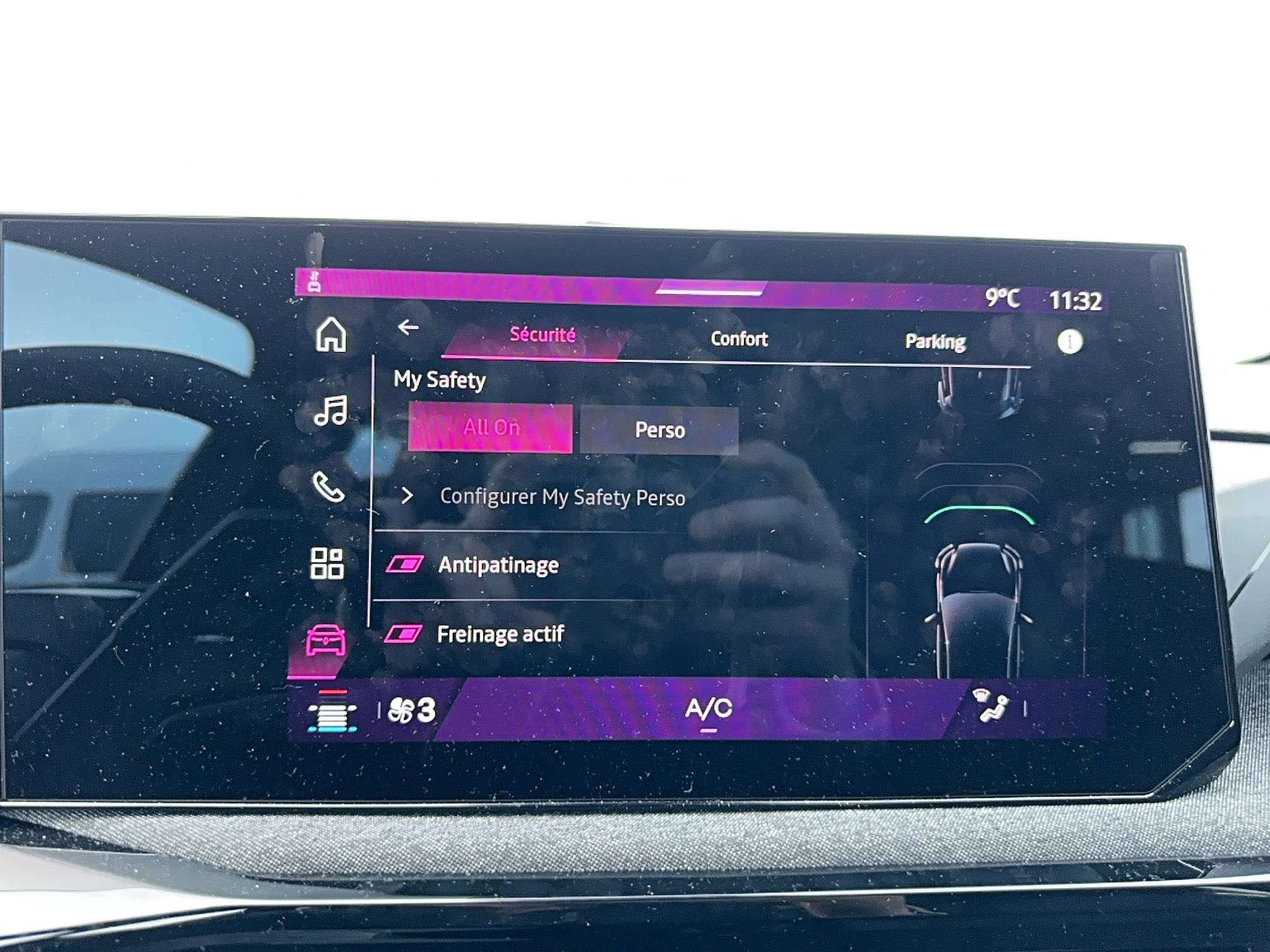 - My Safety switch (raccourci vers configuration personnalisée des aides à la conduite)