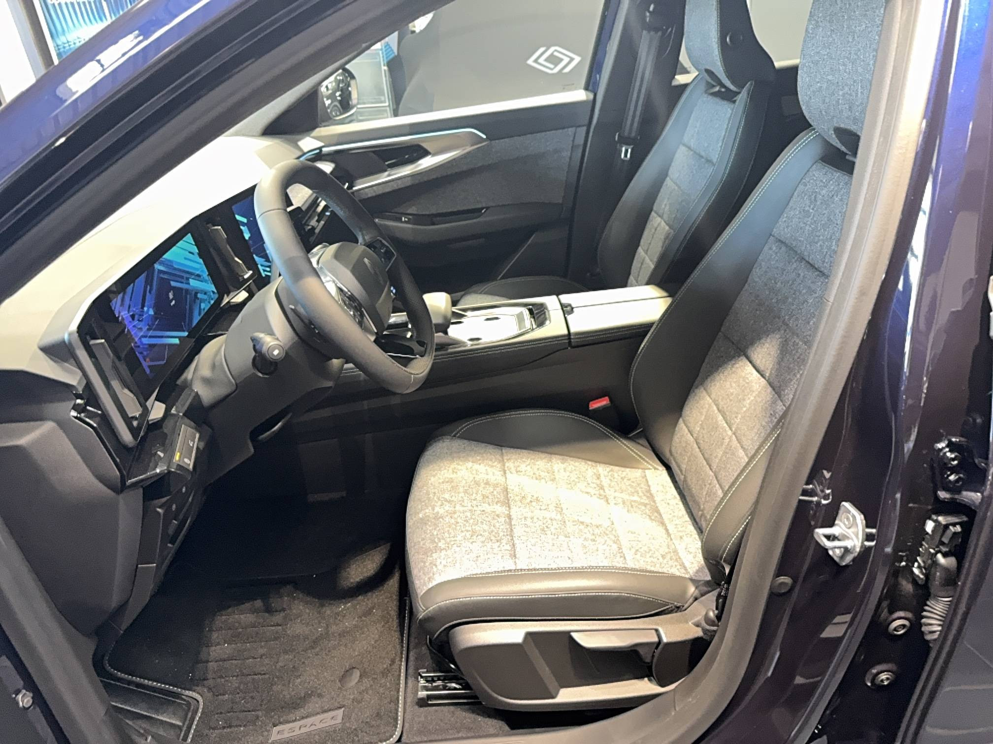 - Sellerie mixte tissu gris / textile enduit grainé noir