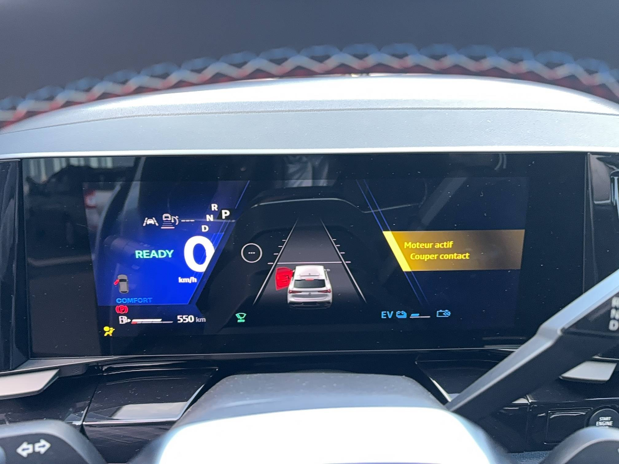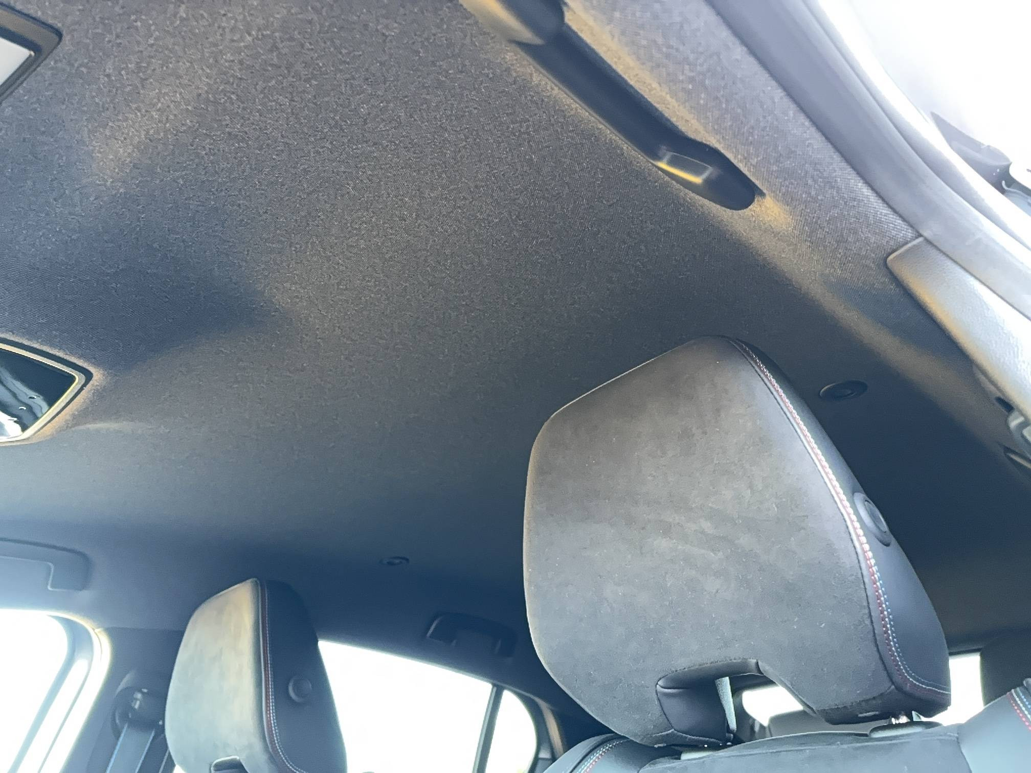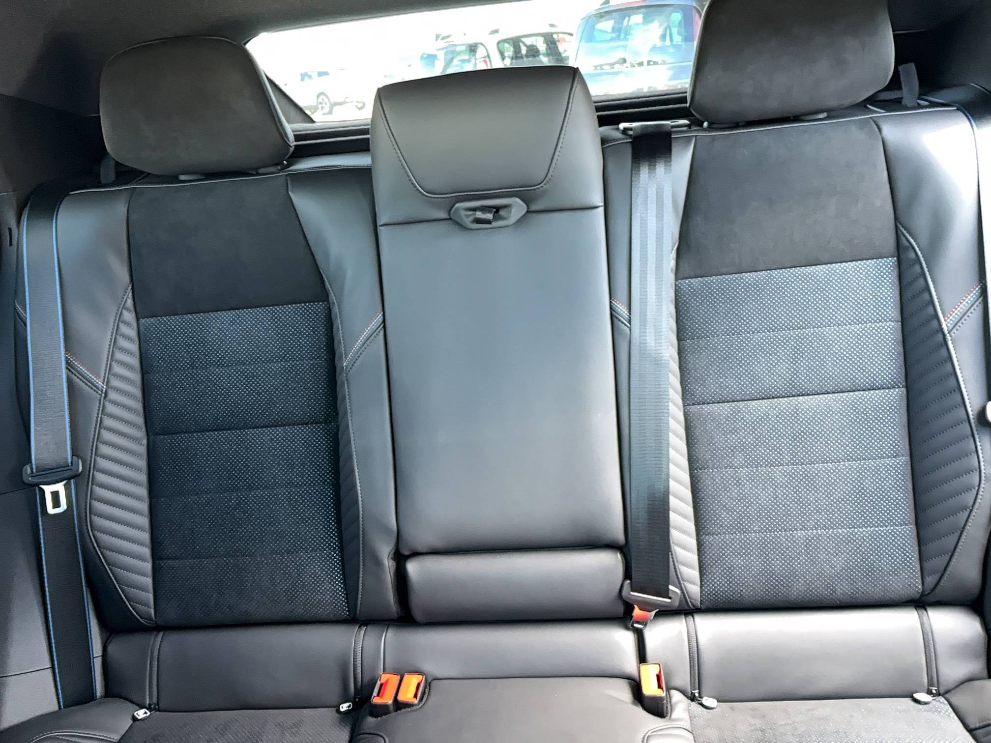- Sellerie mixte Alcantara avec surpiqûres bleues et logo Alpine lumineux