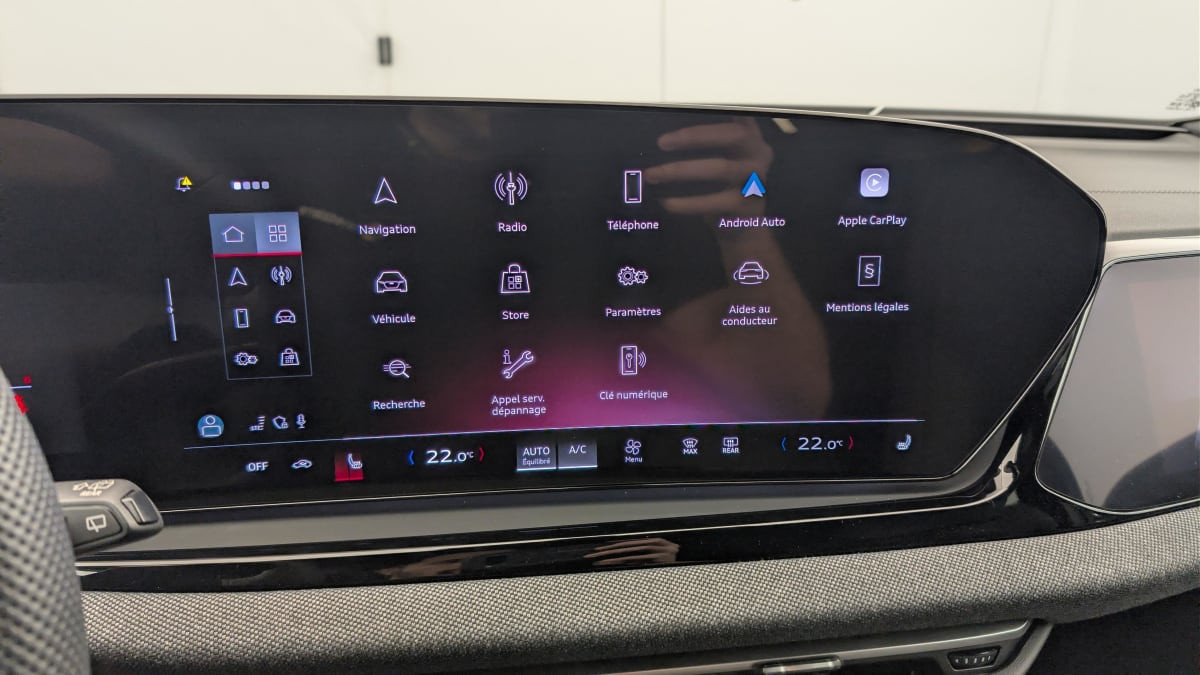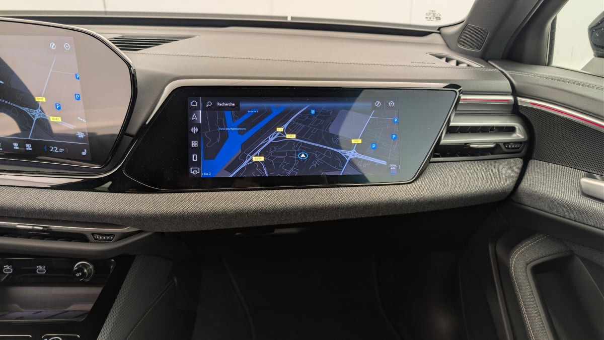 - Navigation MMI avec MMI touch Le système de navigation MMI plus avec MMI touch offre : - l'écran panoramique MMI avec technologie OLED, comprenant l'Audi virtual cockpit plus avec écran de 11,9 pouces ainsi que l'écran MMI touch de14,5" - système de navigation avec affichage des cartes et guidage routier sur l'écran couleur haute résolution de 14,5" - mise à jour des cartes en ligne - Affichage de cartes en 3D montrant de nombreux sites d'intérêt - informations routières en ligne - MMI search - MMI touch