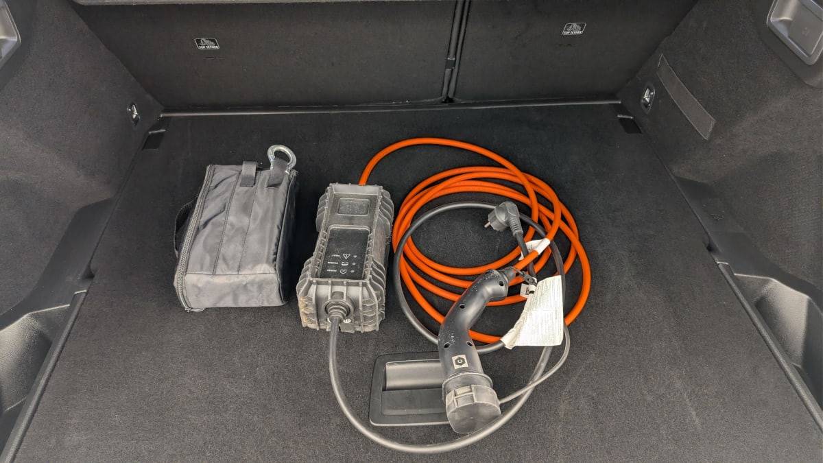 - Planche de coffre avec zone de rangement intégrée pour le câble de recharge