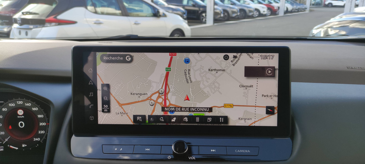 - Système de navigation NissanConnect avec écran tactile 12,3" : Live Traffic et cartes 3D, Navigation porte-à-porte, Recherche par Points d'Intérêt, Google Street View, Vue Satellite et Météo, Mise à jour des cartes et logiciels, Prix des carburants, Commandes vocales avancées avec Amazon Alexa®