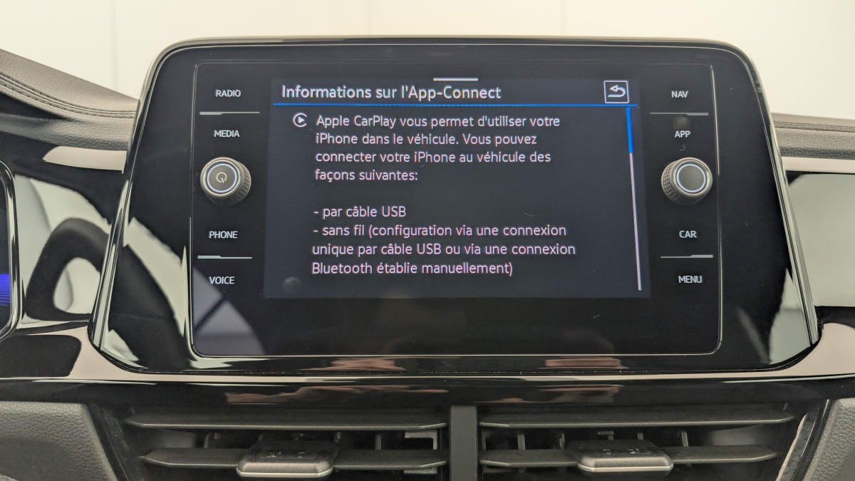 - App-Connect sans fil - affichage et contrôle via l’écran tactile de la voiture, du contenu, des fonctions et des applications compatibles présents sur le Smartphone (compatibilité avec les systèmes Apple CarPlay, Apple CarPlay sans fil, Android Auto, MirrorLink). Seuls les contenus validés et utilisables en «main libre» peuvent fonctionner.